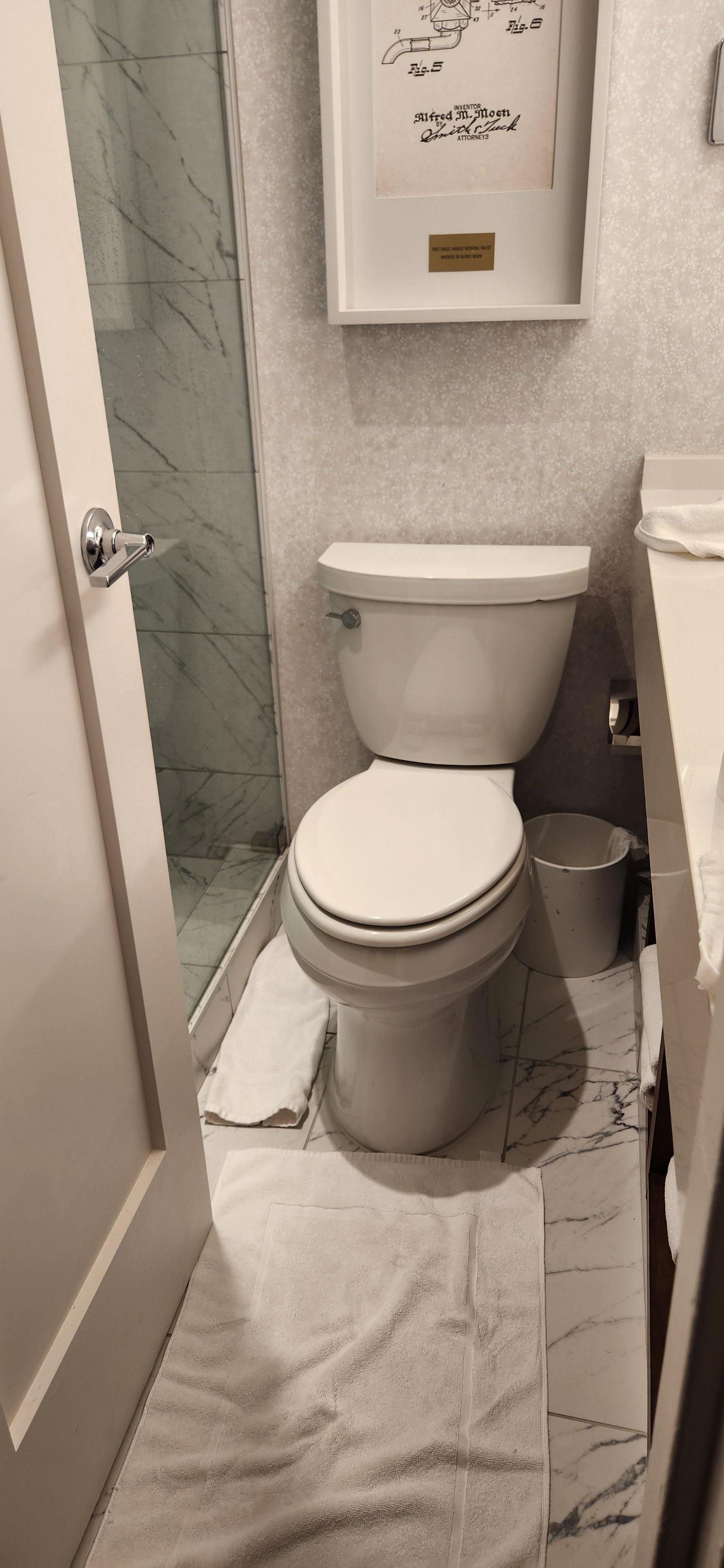 The room was a nice size, but the bathroom was way too tight. There is NO elbow room at all from the sink to the shower glass doors with the toilet in between. Also, the refrigerator does not have a freezer section, so don't expect to refreeze an ice pack for example.