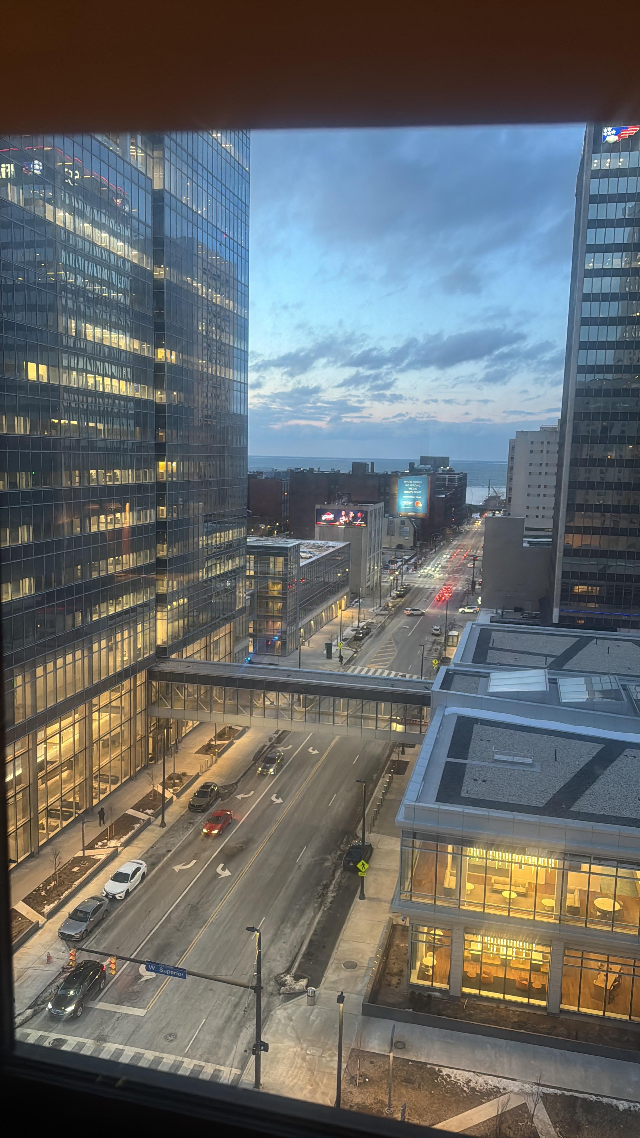 The room was great, the staff was accommodating even though they were incredibly being hosting many people in to watch the NFL game the next day. Highly recommend this hotel, and to add to this, Cleveland was a blast!.