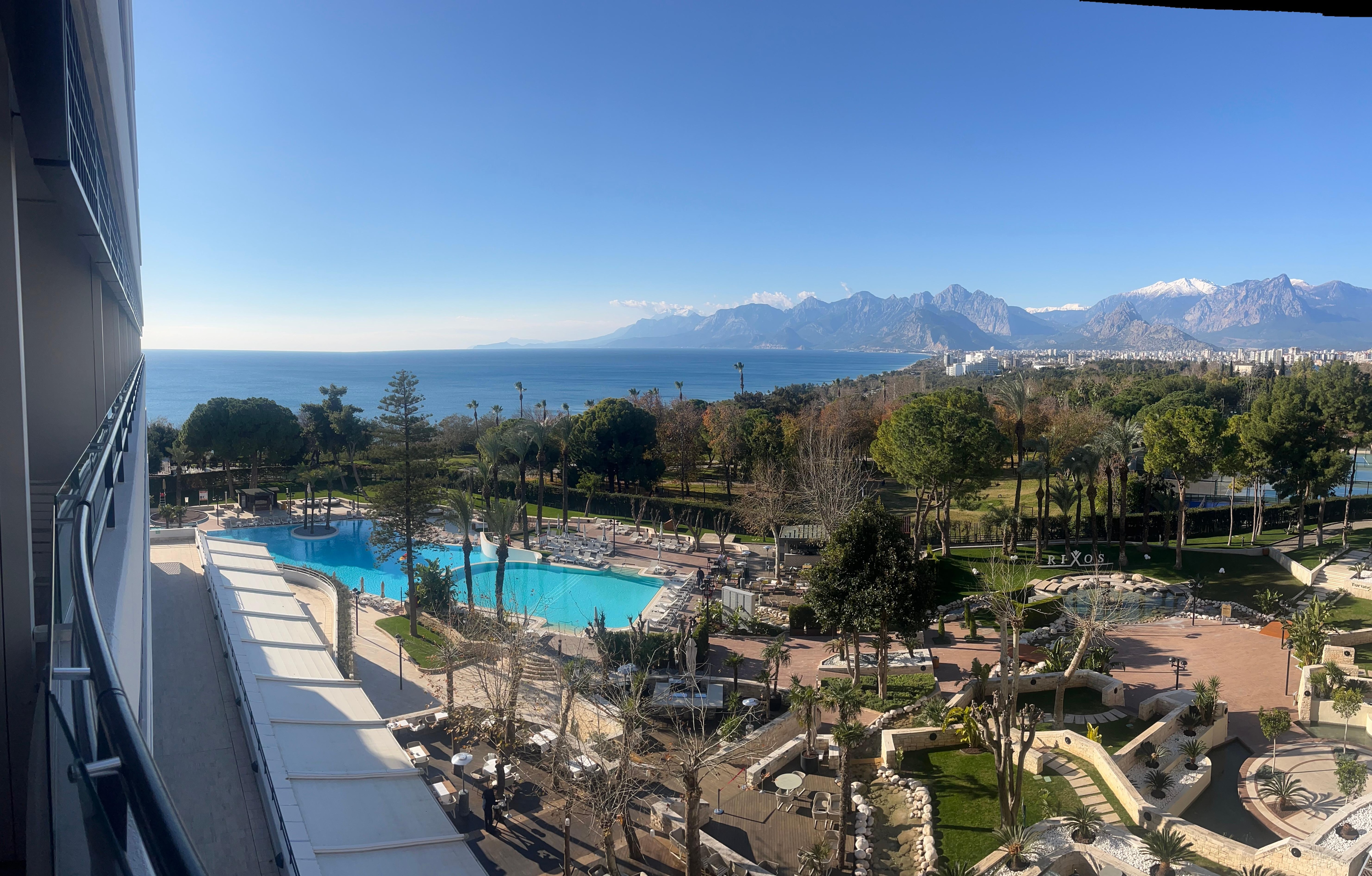 酒店早餐非常丰盛,不过不是那么适合中国人口味。房间都有阳台,可以看到部分地中海景色。酒店后门出去,顺着台阶5分钟可以下到海边。不过海滩都是卵石,非常咯脚。但地中海海水很清澈,也很平静。酒店后门出去左转走到安塔利亚博物馆不到10分钟。那里有有轨电车可以坐到安塔利亚老城。整体而言想住的舒适可以选择这家酒店,想逛景点还是靠老城更近些比较好。