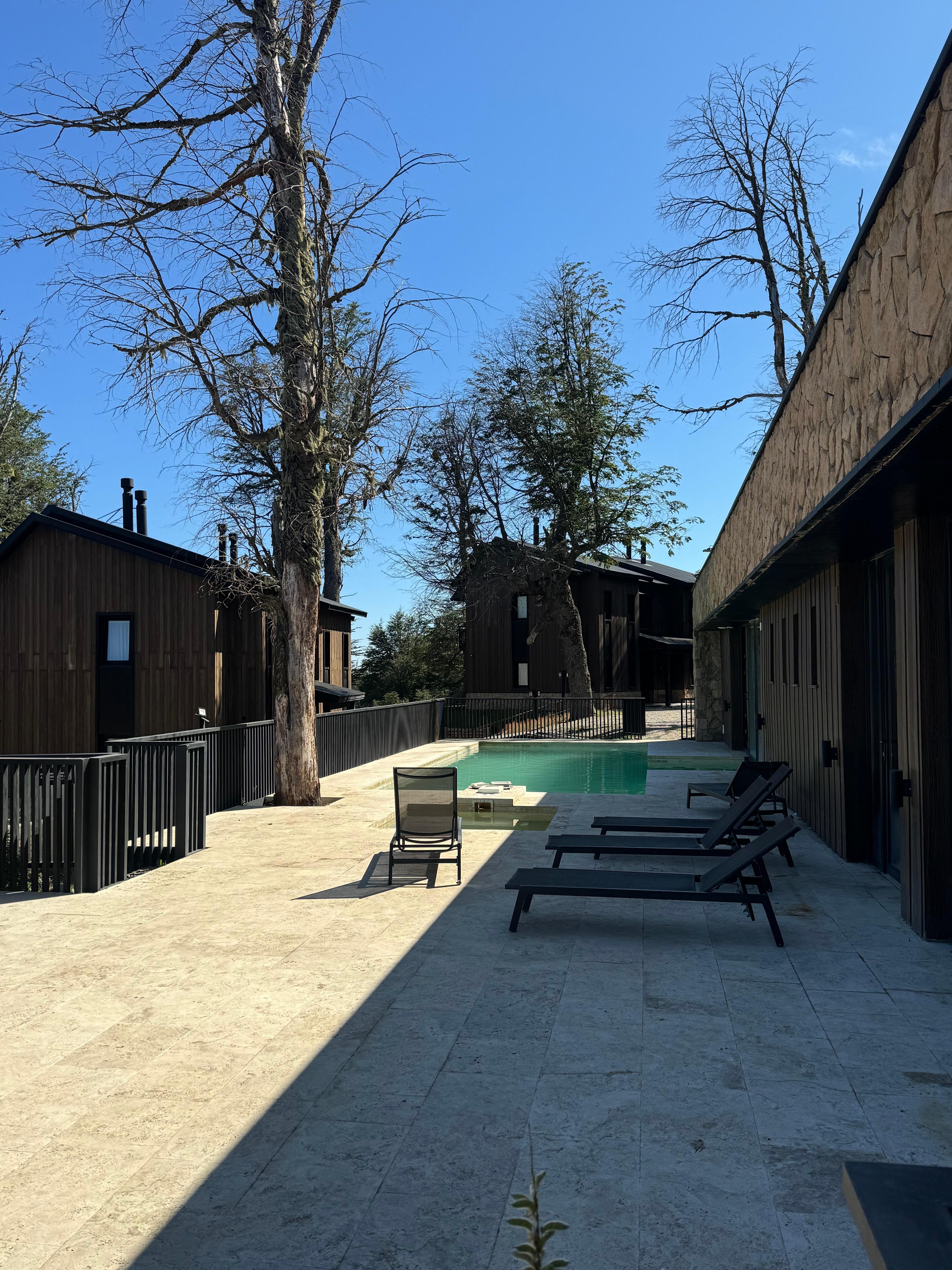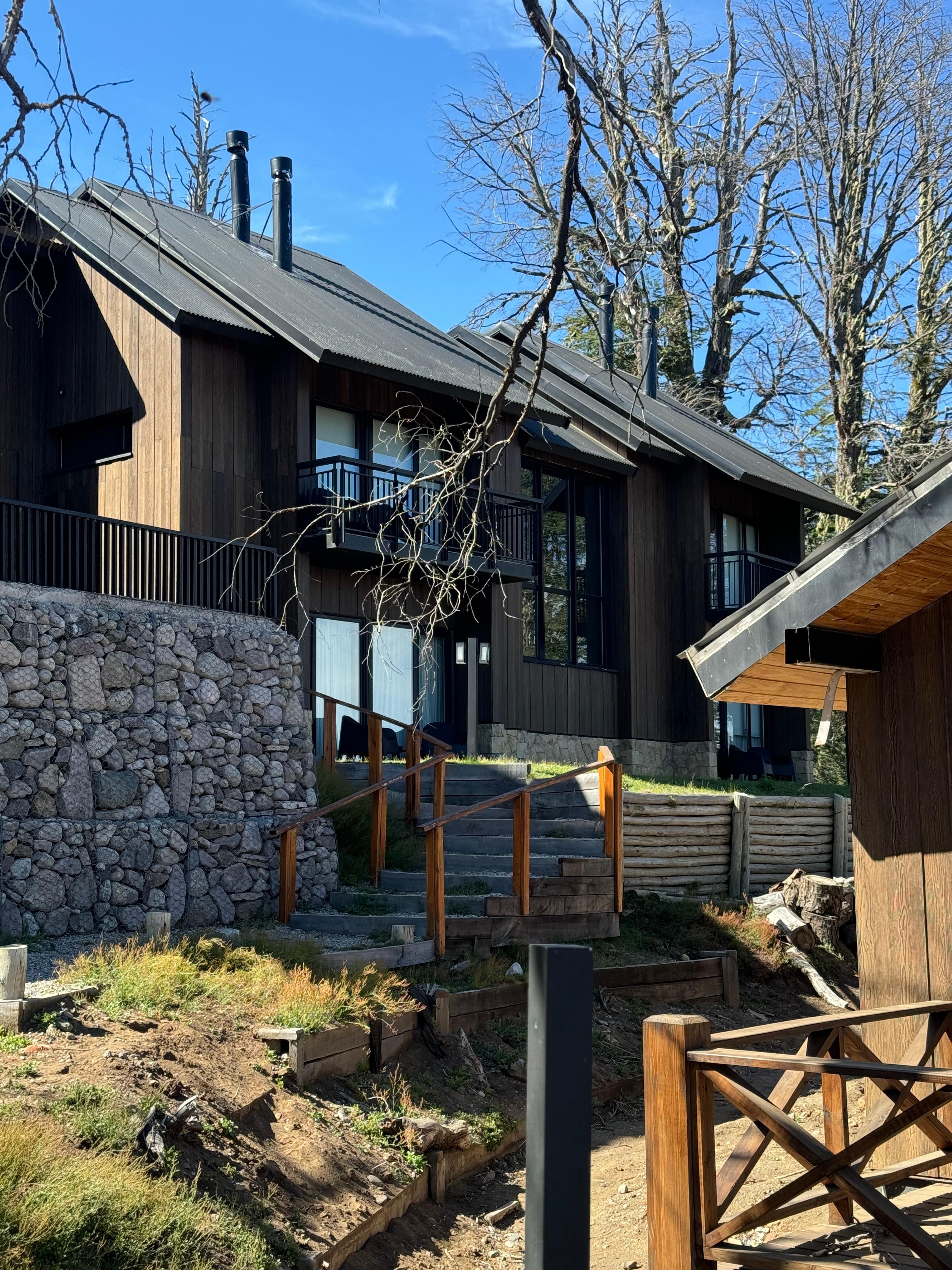 Aclaro que fuimos en verano. Situado en las afueras en carretera pasando Chapelco, está situado en una estación de ski. El camino es difícil según qué vehículo pero el lugar es increíble: cabañas nuevas de madera y piedra, estilo rústico moderno, dispone de mini kitchen con todo lo necesario para preparar lo que necesites. El servicio muy cortés. Tiene una piscina medio techada y medio al aire libre con agua caliente: espectacular para relajarse, y sauna seco y húmedo, que te dejan usarlo incluso después del checkout. Handicap? Pues el restaurante que está en la pista de ski está sobrevalorado con precios infladísimos, y volver a San Martín para cenar de noche, difícil camino. Recomiendo usar la cocina de las instalaciones.