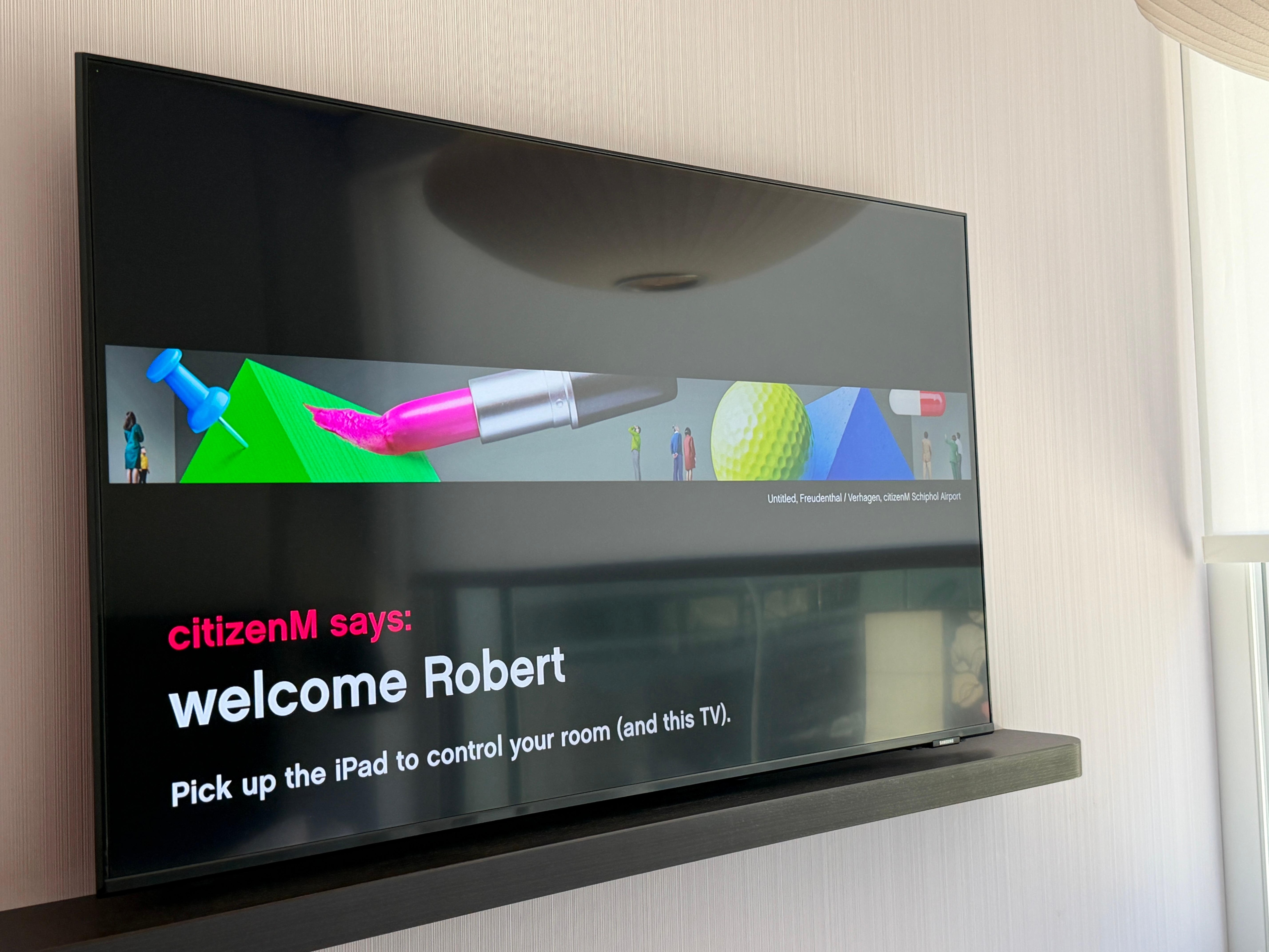 Clean room, standard setup for this hotel. A bit on the pricey side for the size of the room. Also, for self checkin, they made me still show ID and CC. That felt duplicative. And then when it shows you the room number, the only way to keep it is to take a picture- it can't even text you or email you your info? That feels weird since it's such a tech-savvy hotel otherwise. Also, they charge for EVERYTHING which feels a bit much. Some amenities like a bottle of water or a light breakfast or even free coffee might be nice considering hotels half the cost would do at least that. And charging for a late checkout is insane.