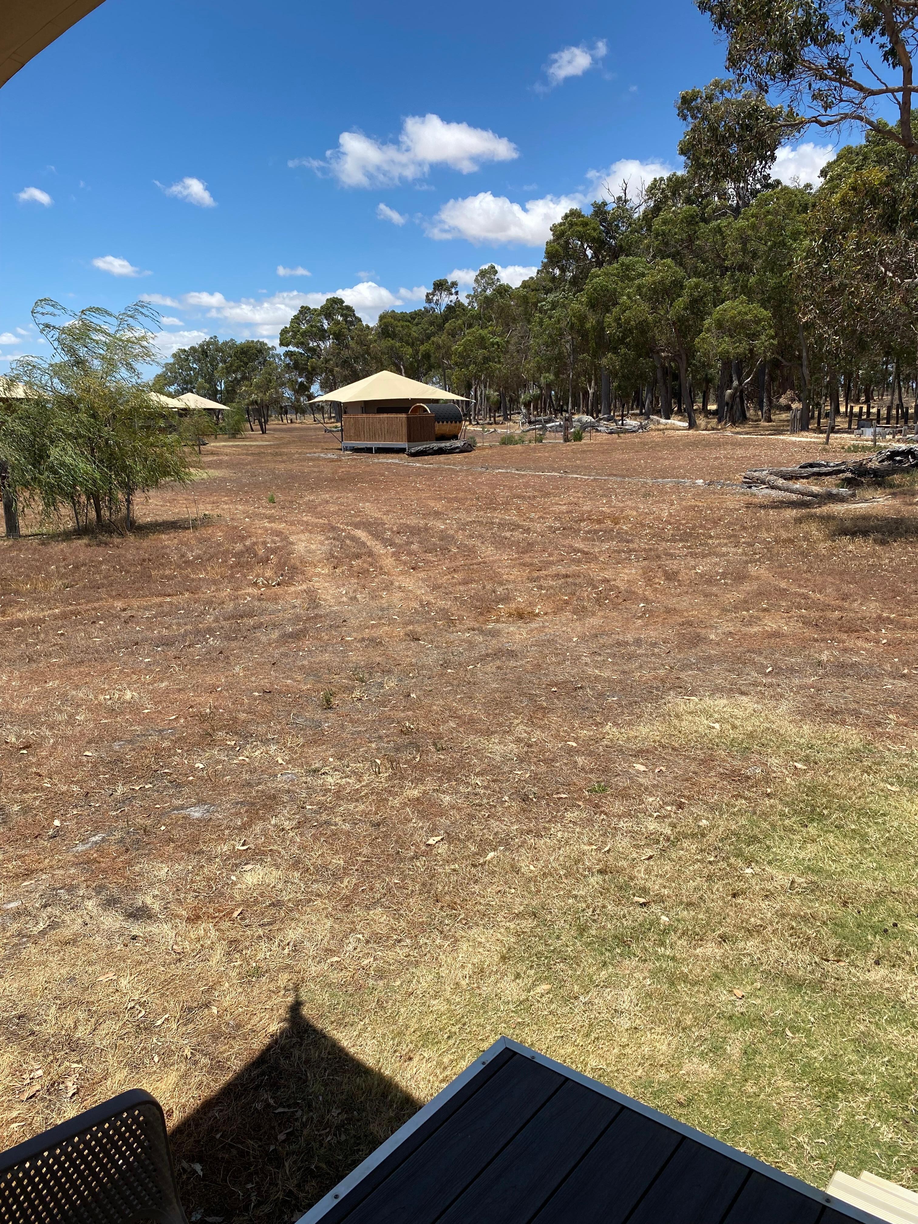 Nice surroundings. Lots of kangaroos (including joeys), blue wrens, and cows around. Tent very spacious, modern and clean and gracefully decorated. Got a well kitted kitchenette. Tent has fan and air condition. Loads of power points. Hot water tank is a little small for all family to have shower back to back but takes minutes to have a new tank of water heated. Owner also provided a freshly baked loaf of sourdough for us which is very nice.