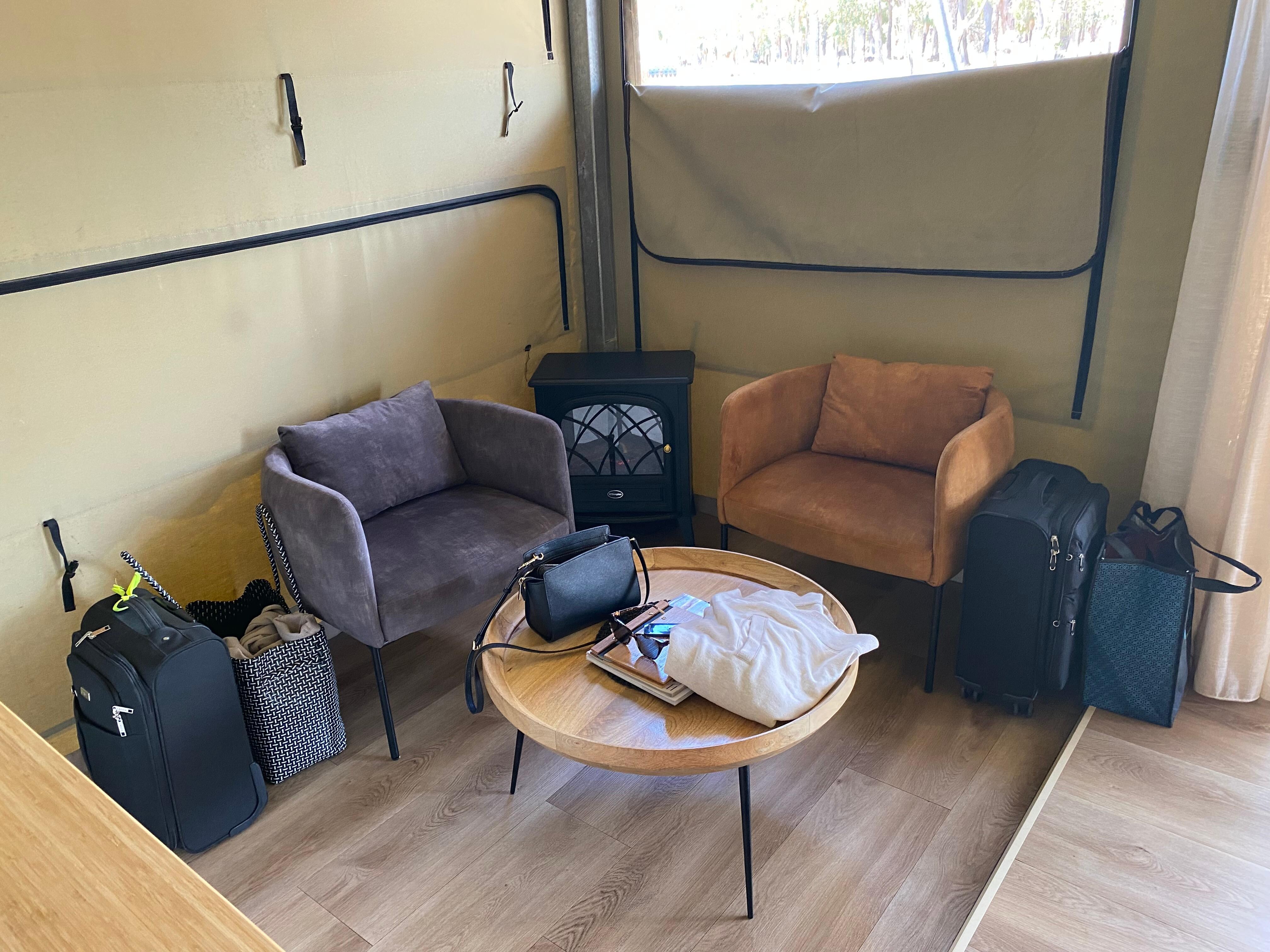 The tents and choices for decor and supplies were amazing. We had some cooler weather, making it a little cool in the evenings despite there being electric fireplaces. This is an active farm and rural setting, breathtaking. Be prepared for some wildlife sounds- crows, kookaburra and more.