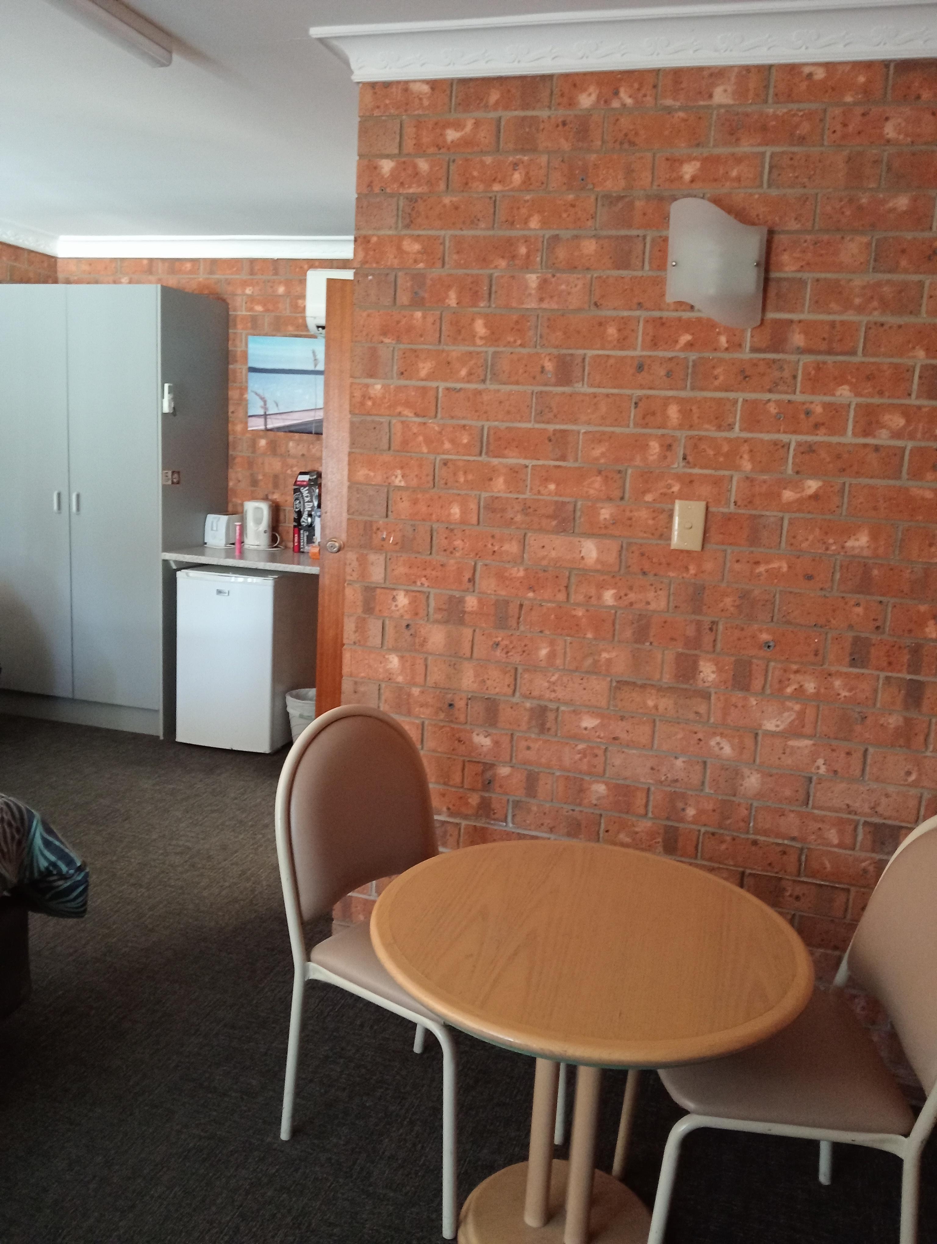 Spacious rooms with all the usual motel facilities. Set well back from the main road so no problems with traffic noise. On-site restaurant is useful as they are happy to deliver orders to your unit. Units include a table for 2 people and adequate crockery and cutlery.