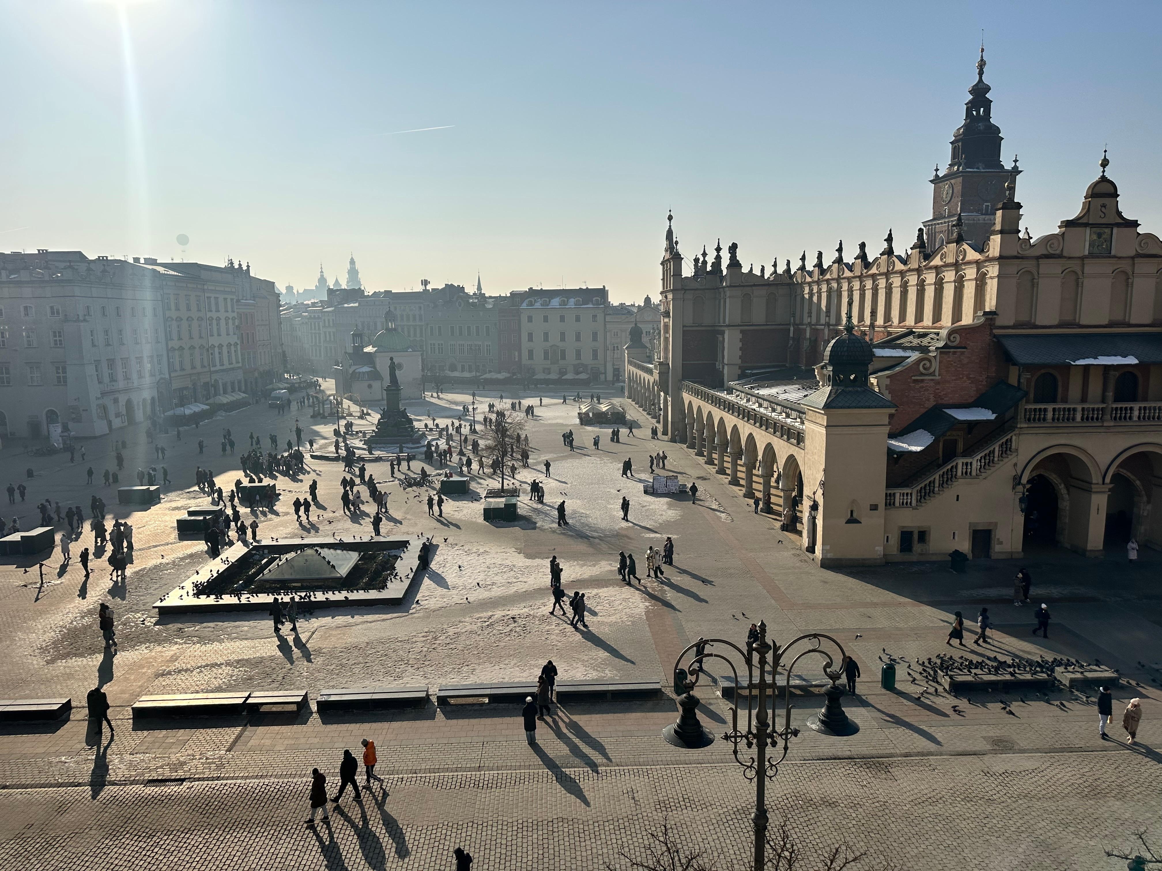 Friendly, welcoming staff. Spotlessly clean. Free breakfast. Fabulous central location right on Main Square. Would highly recommend and will definitely return.