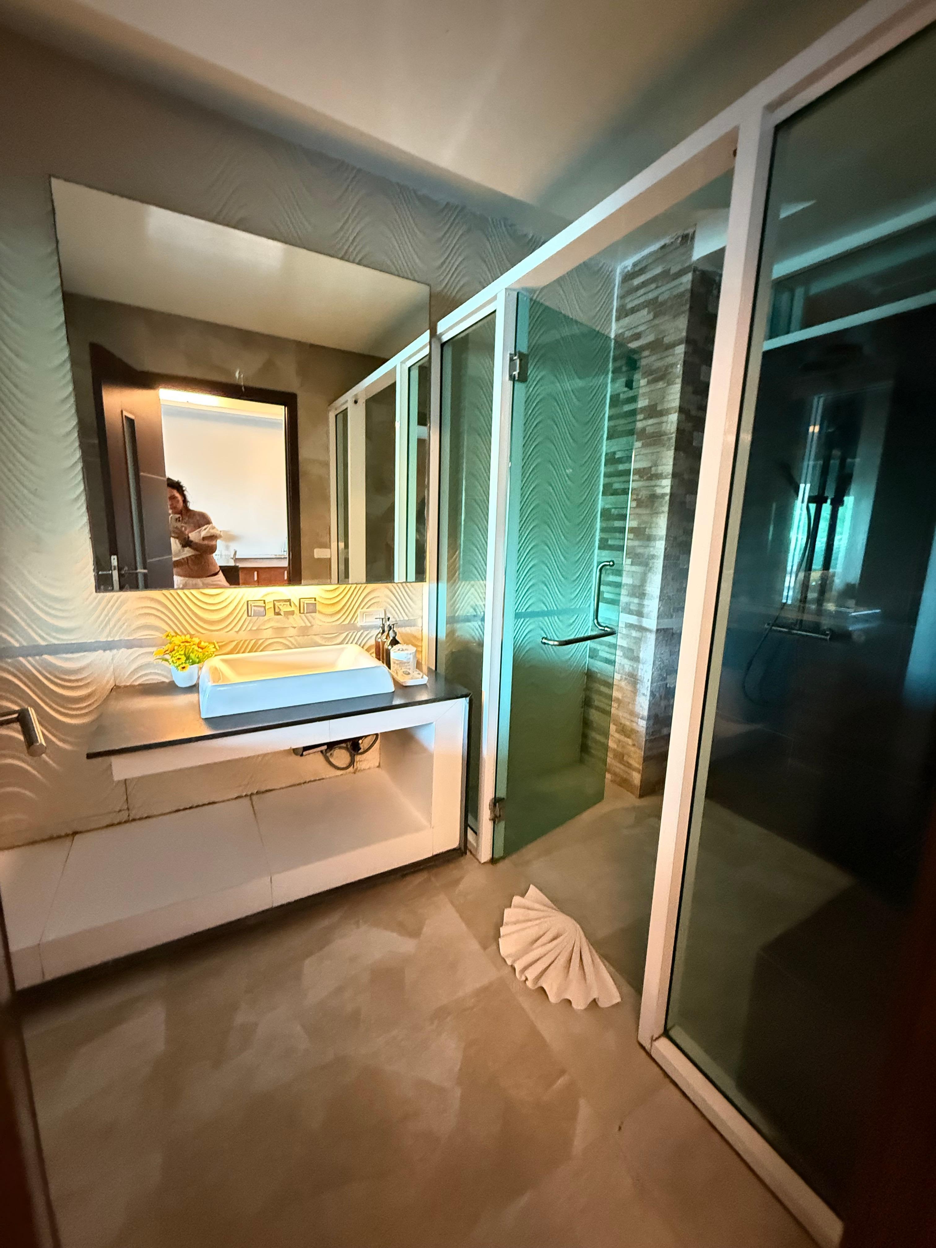 Get the beachfront room. Only 3 of them. Worth the little bit extra. Last hotel on that side of island but the walk is fine. Plenary of stores if you need hydration. 4twenty friendly. Massage booths. Smoke parlor in town. Didn’t eat there. Went into town instead. Room was lovely. Great big shower for 2 easy. Out back balcony has pool private but shared with other 2 rooms. Beach and beautiful turquoise water about 30m away. Smoking allowed with ashtray provided on deck outside. Had issues with A/C both nights. But night dude, that doesn’t smile but helps greatly both nights, fixed issue. J